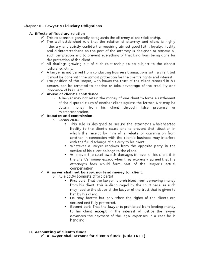Legal and Judicial Ethics (Agpalo) Chapter 8 PDF Fiduciary Costs